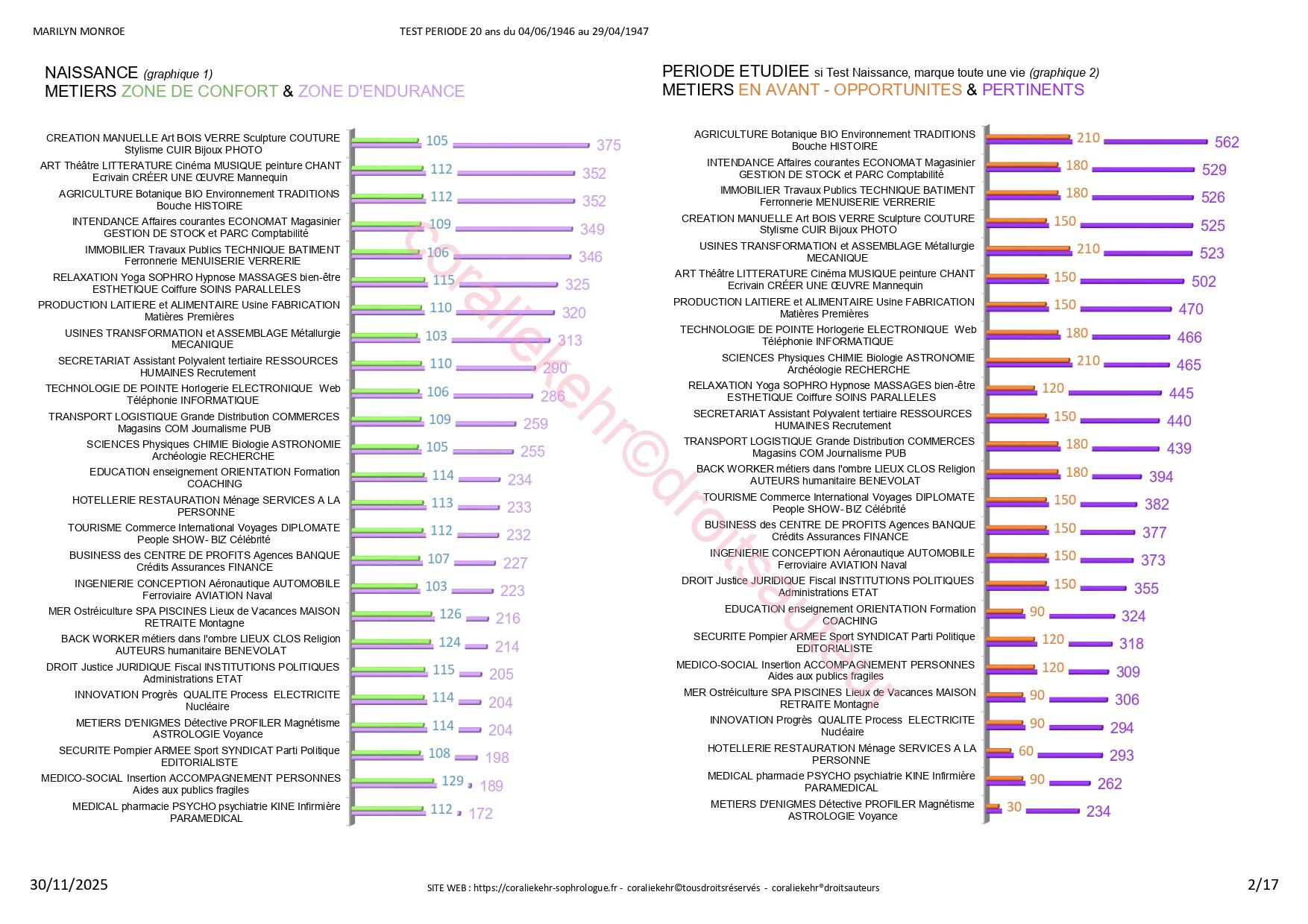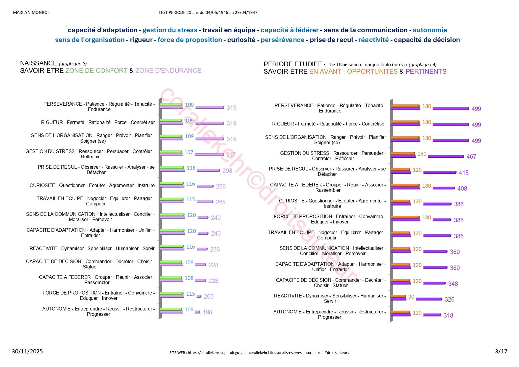 - les savoir-être naturels pour vous, et ceux qui sont pertinents pour la période étudiée (2 graphiques)