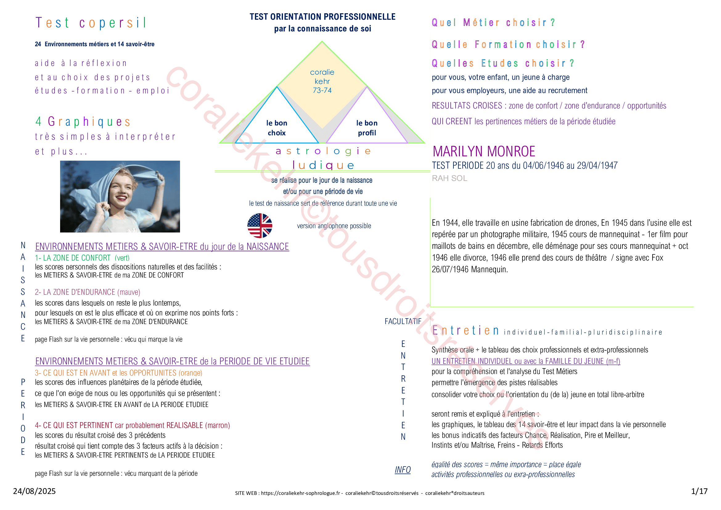 depuis 2019 j'ai réalisé des tests copersil pour des particuliers après avoir testé différentes versions de test sur des parcours emploi achevés (retraités), des parcours de célébrités, et tout d'abord sur tout mon parcours professionnel personnel.