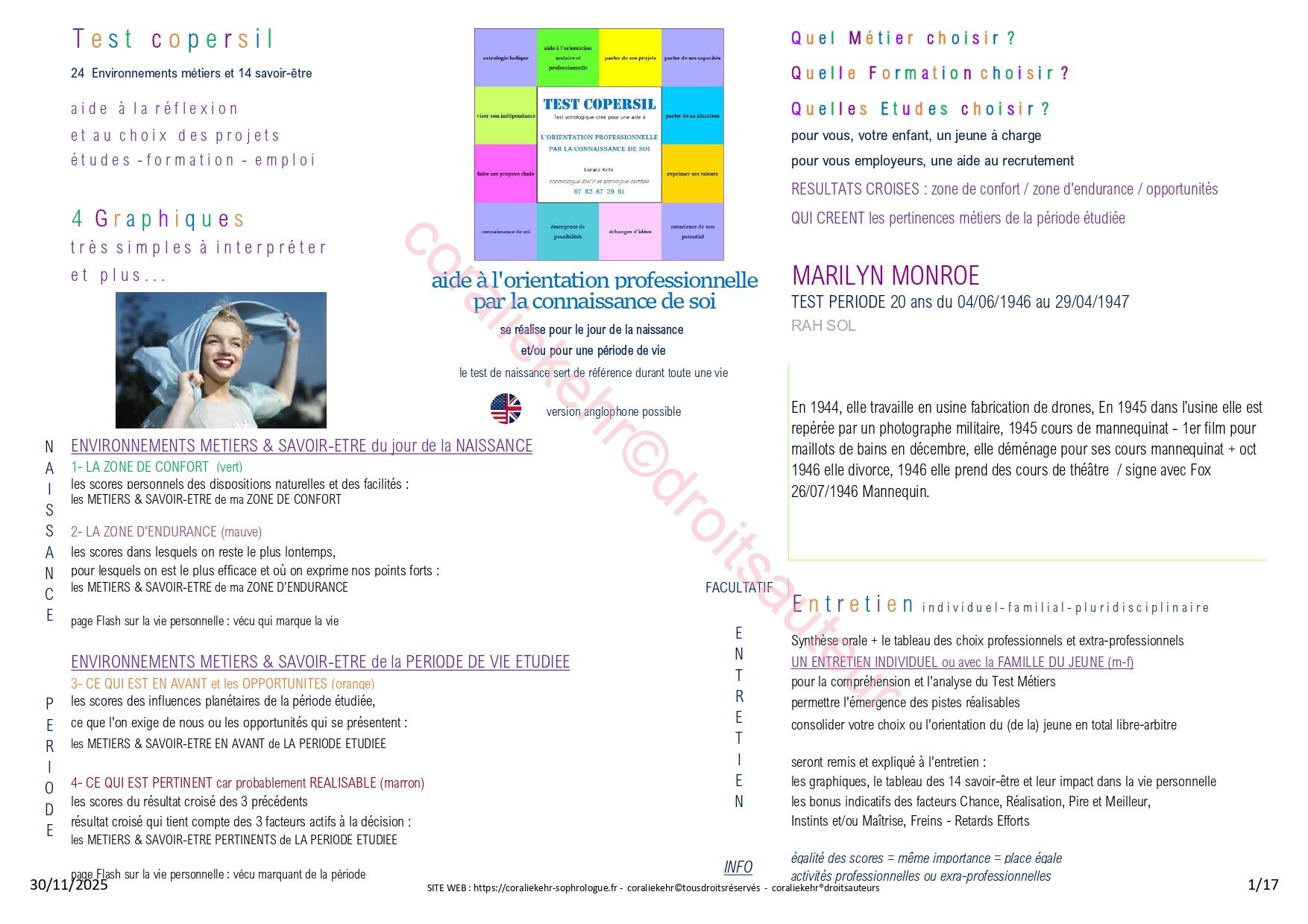 EXEMPLE TEST COPERSIL - MARILYN MONROE artiste (mannequin, chanteuse et actrice) :